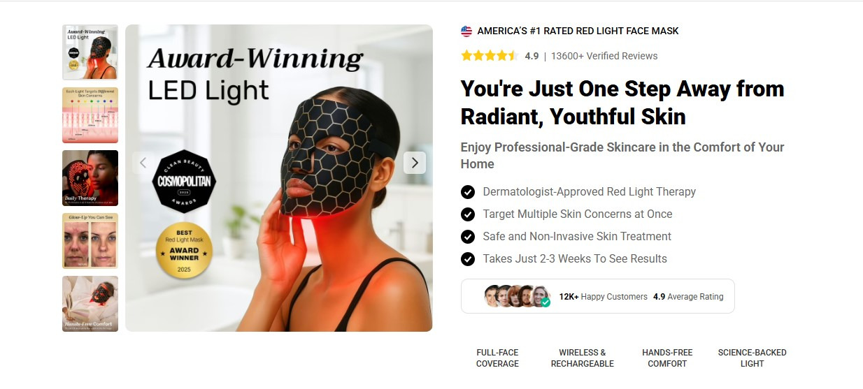 The mask is designed for home use and mimics professional light therapy treatments often found in dermatology clinics—without the high cost or repeated appointments. With regular use, it aims to support smoother skin, reduced fine lines, and a healthier, more youthful glow.